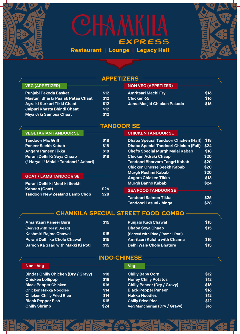 (* Haryali * Malai * Tandoori * Achari)